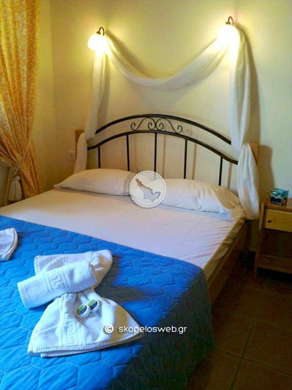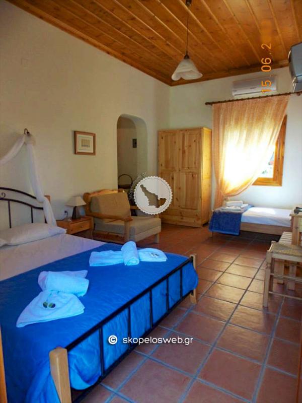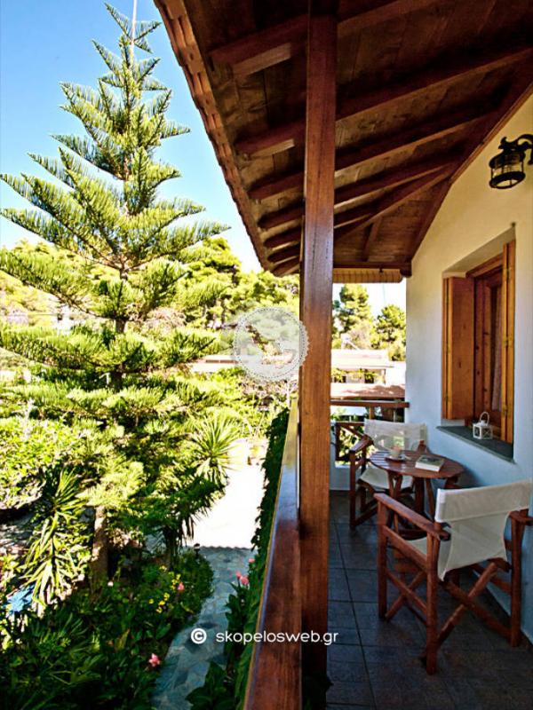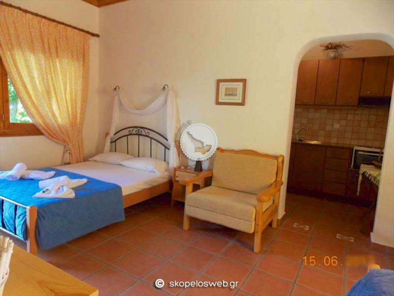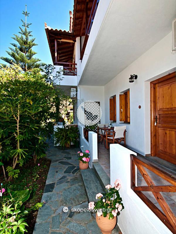 Παραδοσιακά κτίσματα μέσα στο πράσινο.. Σπάνια λουλούδια και δέντρα δημιουργούν ένα παραδεισένιο περιβάλλον. Στον κήπο μας κάτω από τα δέντρα και την μεγάλη μας πέργκολα , θα απολαύσετε τον καφέ και το παραδοσιακό γλυκό που θα σας προσφέρουμε με απέραντη φιλοξενία. Σε απόσταση 50μ από τον χώρο μας βρίσκεται η πεντακάθαρη θάλασσα όπου θα απολαύσετε το μπάνιο σας, όπως επίσης και οι 3 ταβέρνες, περίπτερο, το μίνι μάρκετ και μια καφετέρια. Η πρόσβαση προς τις άλλες παραλίες είναι κοντινή και υπάρχει καθημερινή τακτική συγκοινωνία με λεωφορεία , προς αυτές όσο και προς τη χώρα του νησιού που απέχει 8χλμ. Εαν πάλι είστε λάτρης των περιπάτων στο βουνό , ο Αγνώντας έχει να σας προσφέρει ωραιότατες διαδρομές, μέσα στο πράσινο, όπως την διαδρομή προς Αμάραντο και Αγ. Ρηγίνο όπου αγναντεύει κανείς το απέραντο γαλάζιο του πελάγους.. Απόσταση από ... Την παραλία του Αγνώντα 50μ Την χώρα της Σκοπέλου 8km 5-10 λεπτά απο την χώρα. Αλλες κοντινές παραλίες Λιμνονάρι 1.5 km , Στάφυλος & Βελανιό 4 km Κοντά σε οτιδήποτε χρειάζεστε Πρατήριο καυσίμων 5.5 km Κέντρο υγείας 8 km (Ελικοδρόμιο 4,5 km) Τα Στούντιο και οι Μεζονέτες 2 έως 4 ατόμων είναι εξοπλισμένα με ατομικό μπάνιο, κρύο - ζεστό νερό όλο το 24ωρο, κλιματισμό, τηλεόραση, ηλεκτρικό σίδερο, πιστολάκι μαλλιών. Ο κάθε χώρος έχει την δική του κουζίνα πλήρως εξοπλισμένη με ψυγείο , φούρνο, καφετιέρα, βραστήρα καθώς και όλα τα απαραίτητα οικιακά σκεύη.
