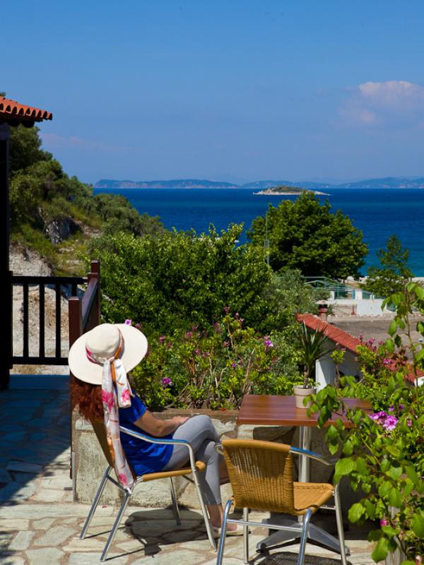 At a scenic village, a few steps from the beach, overlooking Delphi Mountain, rich perfumed Pine trees & azure waters, combines a unique Greek Island Experience Hovolo Apartments